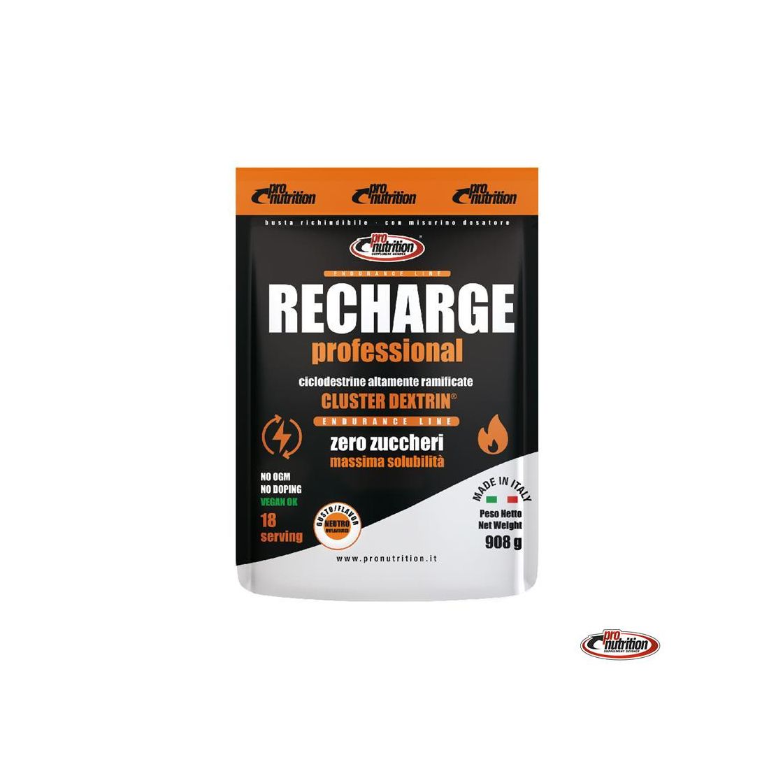 Integratore alimentare di carboidrati a base di Ciclodestrine altamente ramificate, gusto neutro. Recharge professional è un integratore alimentare di carboidrati realizzato con destrine cicliche altamente ramificate. Naturalmente privo di lattosio.