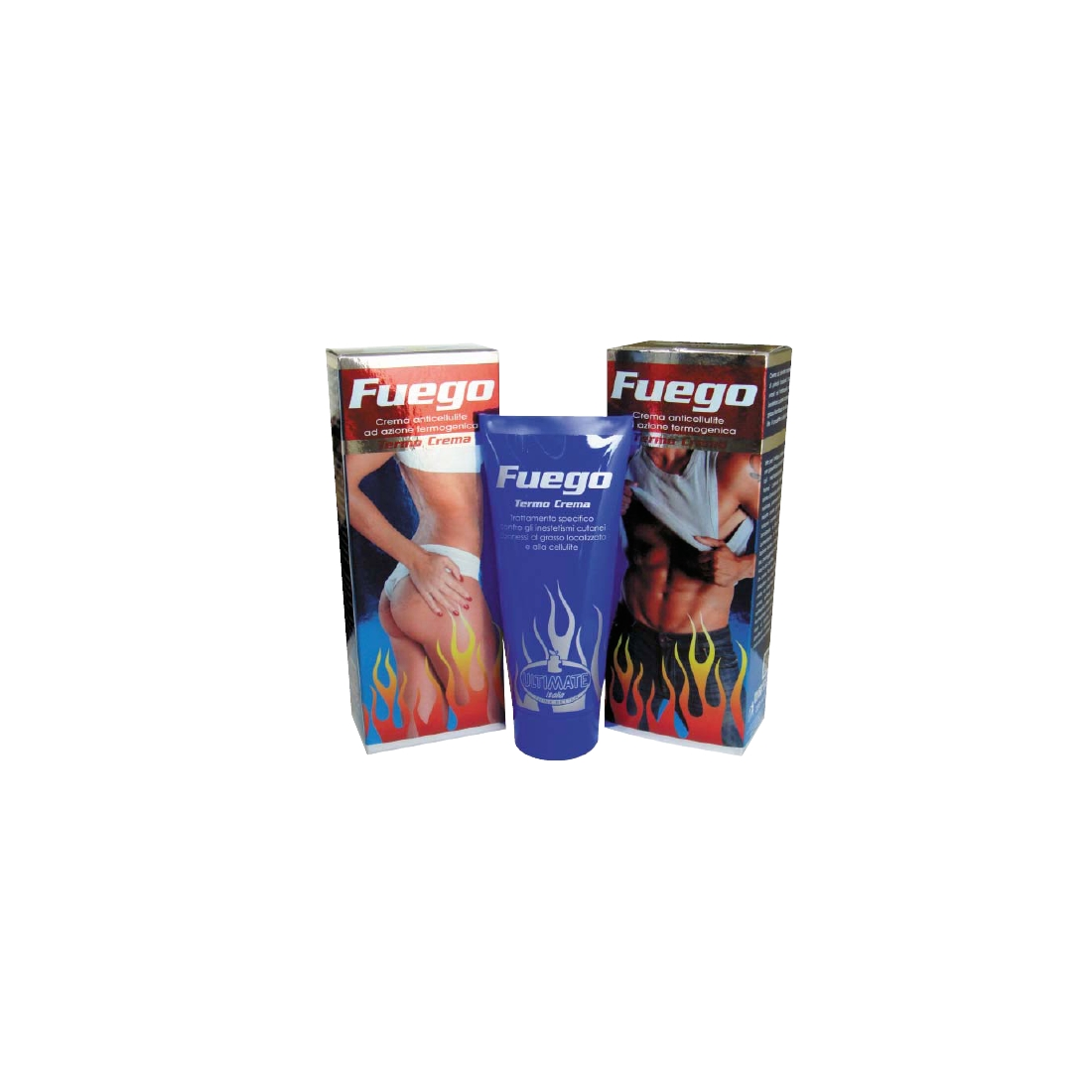 Crema cosmetica studiata per favorire il dimagrimento localizzato. Contiene principi attivi per i quali esistono ricerche scientifiche indipendenti (non eseguite da Ultimate Italia) che ne provano l'efficacia. Spesso una ricerca scientifica mostra i benefici e gli ottimi risultati che ha dato un solo principio attivo, o la combinazione di alcuni. Basterebbe questo per rendere ottimo un prodotto. Invece in FUEGO THERMO CREMA abbiamo riunito più ricerche scientifiche, ciascuna della quali aveva funzionato di per sé.